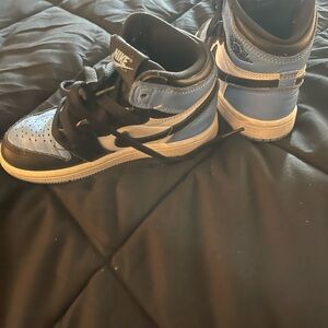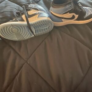 These Nike sneakers boast a striking black and blue color scheme, perfect for making a statement. Designed with a classic high-top silhouette, they offer both style and support. The durable construction ensures they are ideal for everyday wear, whether on the court or the street.