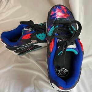 Experience the perfect fusion of style and comfort with Nike's black and blue sneakers. These shoes are crafted for those who appreciate a sleek design and reliable performance. Ideal for everyday wear, they offer a modern look with the trusted quality of Nike. Worn 1-2 times. Nike air max.