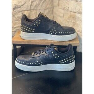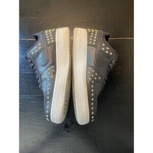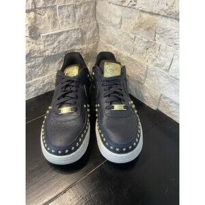 Stylish black sneakers with gold star accents. Iconic Nike design. Comfortable and trendy.