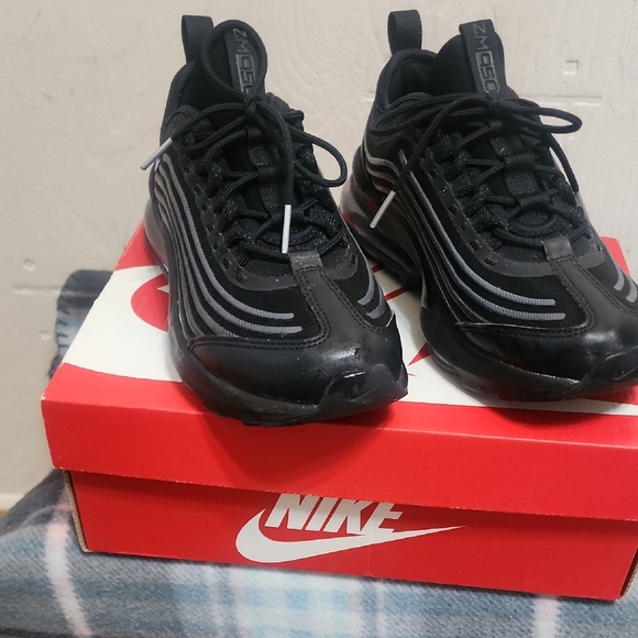 Dynamic Nike air max shoes with black and gray accents. Perfect for sports and casual wear. Women's size 6-6.5 can also fit worn once and odor free