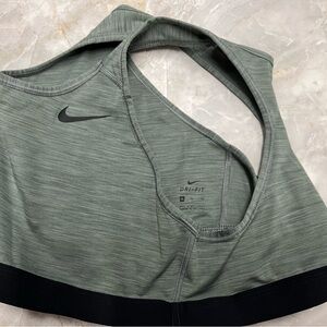 Experience unparalleled comfort and support with the Nike sports bra, crafted in a sleek black and gray color palette. Designed for medium-impact activities, this bra features wide straps and a classic racerback for a secure fit. The moisture-wicking fabric ensures you stay dry and comfortable, while the iconic Nike swoosh adds a touch of style.