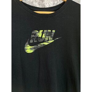 Nike Black and Green Swoosh Athletic Cut "Run" T Shirt Men's Medium