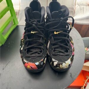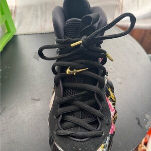 Sleek Nike sneakers in black with metallic gold accents. Modern and stylish design.