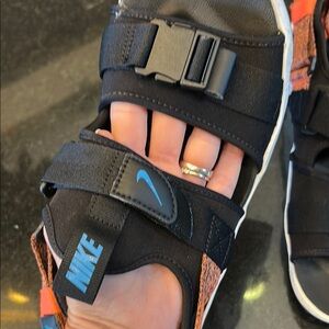 Nike Black and Orange Adventure Sandals with Adjustable Straps