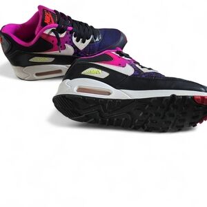 Stylish Nike sneakers in black and pink. Perfect for casual wear. shoe have some wear and tear inspect pics. minimal wear on soles. Please carefully review ALL pictures before purchasing as all are of the exact item being sold.