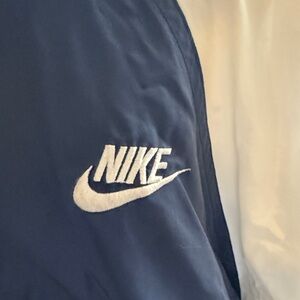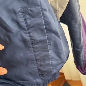Classic Nike track jacket with zip closure. Features logo on chest. Vintage 90s Nike Purple Navy White Full Windbreaker medium, use great condition little