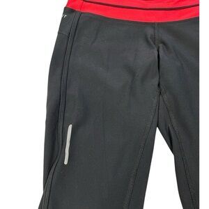 Stylish black jeggings with red waistband. Comfortable fit. Perfect for active wear. W 11 1/2” X L 20 1/2” Inseam 15”. # 1098