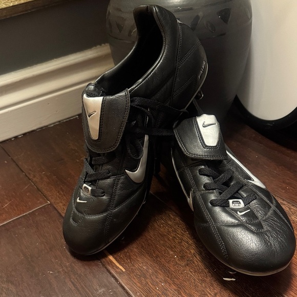 Vintage Dynamic Nike shoes with sleek black leather and silver details. Ideal for sports and active wear.
