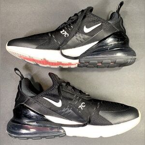 Sleek black design with white accents. Comfortable and stylish. Perfect for athletic activities.