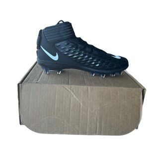 Experience superior field traction with these Nike athletic shoes, featuring a sleek black and white design. The high-top construction offers enhanced ankle support, while the cleated sole ensures optimal performance on the field. Perfect for competitive play, these shoes combine style and functionality with the iconic Nike swoosh.
