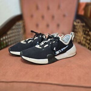 Sleek Nike sneakers with a breathable mesh design. Black upper with white accents. Perfect for casual wear.