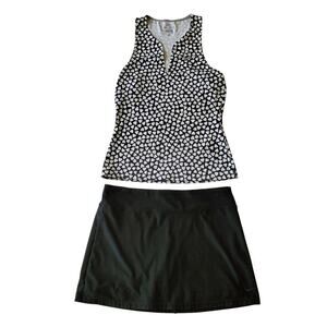 Stylish sleeveless dress with a unique black and white pattern. Perfect for casual outings.