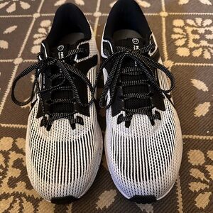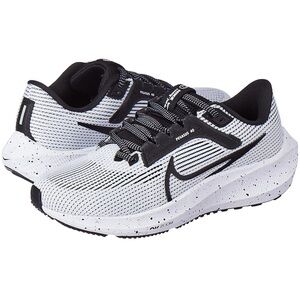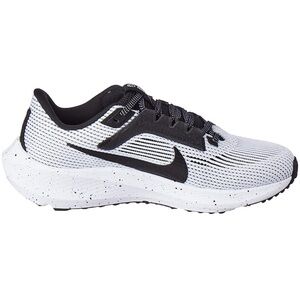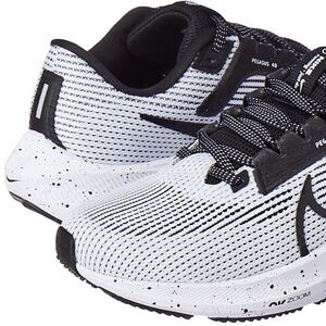 Sleek Nike running shoes in black and white. Ideal for athletic activities.