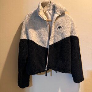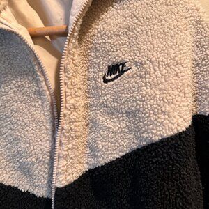 Nike Black and White Sherpa Cowl Sweater