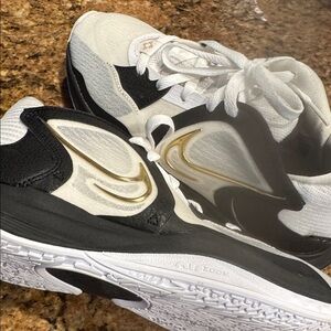 Nike Black and White Sneakers with Gold Swoosh- never worn, bought wrong size