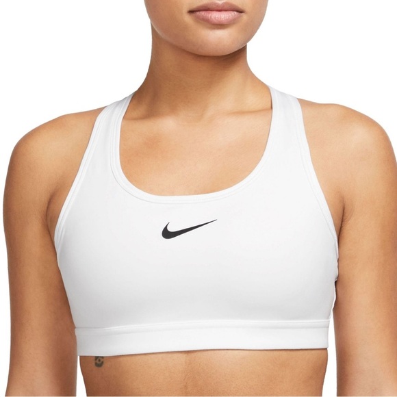 Experience comfort and support with this Nike sports bra, featuring a sleek black and white design. Crafted from moisture-wicking fabric, it ensures you stay dry during workouts. The racerback style and wide straps provide excellent support for medium-impact activities.