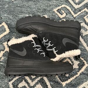 Experience warmth and style with Nike's black and white winter boots, featuring a plush faux fur lining and a rugged rubber sole for optimal traction in snowy conditions. These will keep your feet warm, dry and comfortable. No damage No box