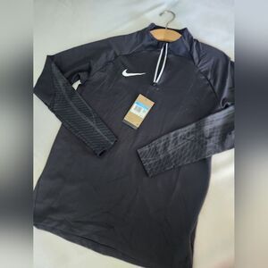 please see measurements Elevate your athletic wardrobe with the Nike Black Performance Jacket, designed for optimal comfort and style. This lightweight jacket features a sleek quarter-zip design and showcases the iconic Nike swoosh on the chest, making it ideal for both active and casual occasions.