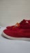 Bold crimson high-tops by Nike. Features textured accents and a contrasting white sole.