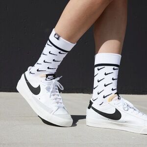 Praised by the streets for its simplicity and comfort, the Blazer returns with its classic hoops style. Featuring crisp leather, low-cut collar and an exposed tongue, it's a must-have wardrobe staple.