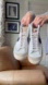 These Nike Blazer Mid ’77 Vintage sneakers are an iconic high-top classic featuring premium white leather uppers, a bold black Swoosh, exposed foam tongue detail, and the retro herringbone sole that makes this style one of Nike’s most timeless silhouettes.