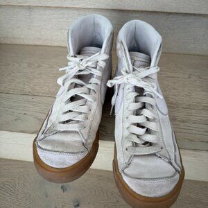 The Nike Blazer Mid 77 has a style that matches its retro design. In a light pink hue, this sneaker features a vintage-looking leather look. Here, the retro Nike logo appears on the tongue, the old school 'NIKE' typography on the heel and the usual Swoosh logo appears on the sides. The look is finished with a flat gum rubber sole for comfort.