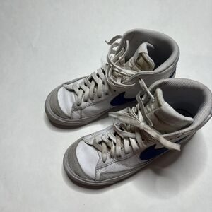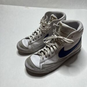 Nike Blazer Mid Top Leather Shoes White Blue Swoosh Youth 6Y DA4086-113