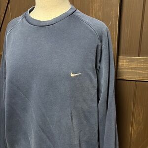 Experience the perfect blend of comfort and style with this Nike crewneck sweater. Crafted in a muted blue shade, it features a classic ribbed collar and cuffs for a relaxed fit. The iconic Nike swoosh adds a touch of sporty elegance to this versatile piece.