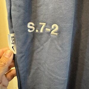 Comfortable blue joggers featuring white embroidered details. Ideal for everyday wear.