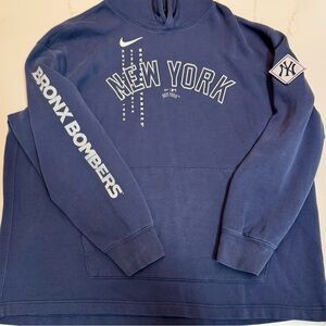 Nike hoodie with New York and Bronx Bombers design. Blue with white accents.