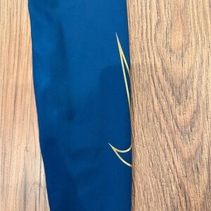 Experience ultimate comfort and flexibility with these Nike blue leggings, designed for optimal performance. The smooth, stretchy material and high waistband ensure a secure fit, making them perfect for any workout. Featuring the iconic white swoosh logo, these full-length leggings combine style and functionality.