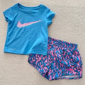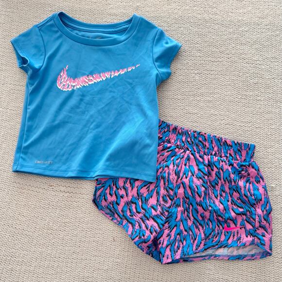 Nike Blue + Pink Short Sleeve Swoosh Abstract Short Outfit Set 2T