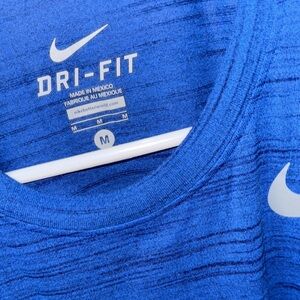 Experience ultimate comfort and style with the Nike Blue Short Sleeve Performance Tee. Designed for athletic and casual wear, this tee features a lightweight, moisture-wicking fabric that keeps you cool and dry. The classic crew neck and heathered texture add a modern touch to your active wardrobe.