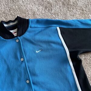 Nike Blue Snap Button Striped Varsity Vintage Bomber Jacket