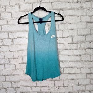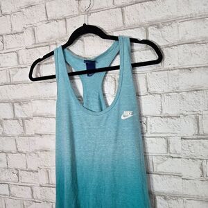 Stylish Nike tank top. Features a gradient blue design. Perfect for workouts or casual wear.
