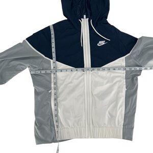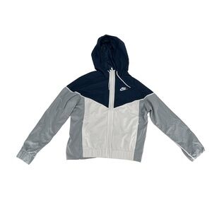 Nike Blue White Gray Color Blocked Hooded Windbreaker Jacket Size Medium Women's