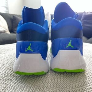 Dynamic blue athletic shoes with green accents. Sleek design for performance. Comfortable fit with durable sole. No box