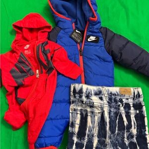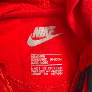 Cozy Nike jacket for newborns. Features vibrant blue and orange colors. Made in Vietnam.