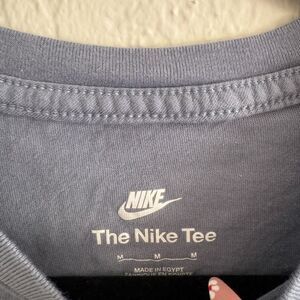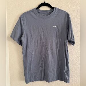 This Nike blue short sleeve tee combines a classic crew neck design with the brand's iconic style. Made from a comfortable cotton blend, it's perfect for casual outings or athletic activities. The subtle Nike swoosh on the chest adds a touch of sporty elegance. In excellent condition no holes or stain.