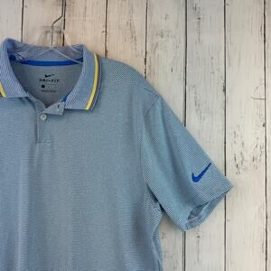 Nike Blue/White Vapor Striped Dri-fit Stretch Short Sleeve Golf Polo Size Large