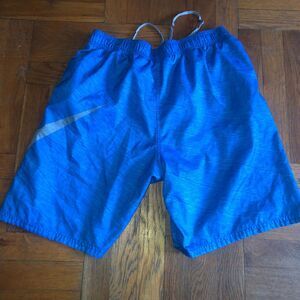 Nike Board Shorts Men's Large Blue Swin Trunks Gray Mesh Polyester EUC
