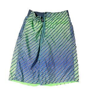 Nike Boardshorts Mens Medium Green Blue Geometric Retro Swim Surf Long Length