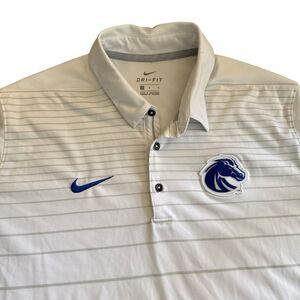 Nike Boise State Dry Fit Polo Size Large White And Blue Embroidered
