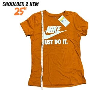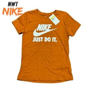 Vibrant orange Nike tee featuring iconic 'Just Do It' print.