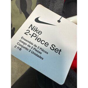This stylish Nike boys' sweatsuit includes a black heather hoodie and matching pants, perfect for comfort and play. New with tags, featuring red and gray accents.