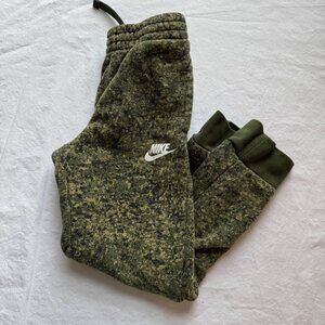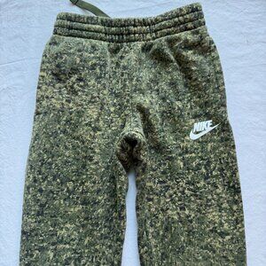 Soft joggers with a camouflage pattern, elastic waistband, and Nike logo. Warm, stylish, and comfortable for everyday wear. Gently used. Standard wear. Nike boys' size 7. Smoke free home.
