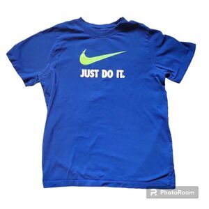 Nike Boys XL Blue Just Do It T-shirt. No cracks in lettering or emblem. Nice everyday shirt. Pre-owned. Normal wash-wear.