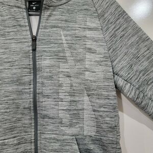 Nike Boys Just Do It Full Zip Heathered Grey Dri Fit Athletic Fleece Jacket Size XLarge with Pockets and Hood. No Rips or Stains and is in Excellent Pre-owned Condition. LARGE LOGO