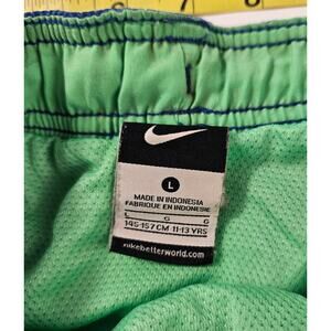 Nike Boys size Large L lined brief swim suit trunks blue green drawstring waist*