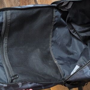 The Nike Camo Brasilia XL Backpack carries everything you need for work, school, or the gym. This Nike backpack has padded adjustable shoulder straps and a haul loop at the top for a variety of carry options and a stretchy mesh pocket on the side for a water bottle or other small items. The spacious zippered main compartment in this Nike backpack has an inside zippered pocket while the back panel fits up to a 15 in. laptop with a spot for organization. Complete with a key leash at the outer mesh zippered pocket, you can trust the Nike Camo Brasilia XL Backpack to have everything you need.